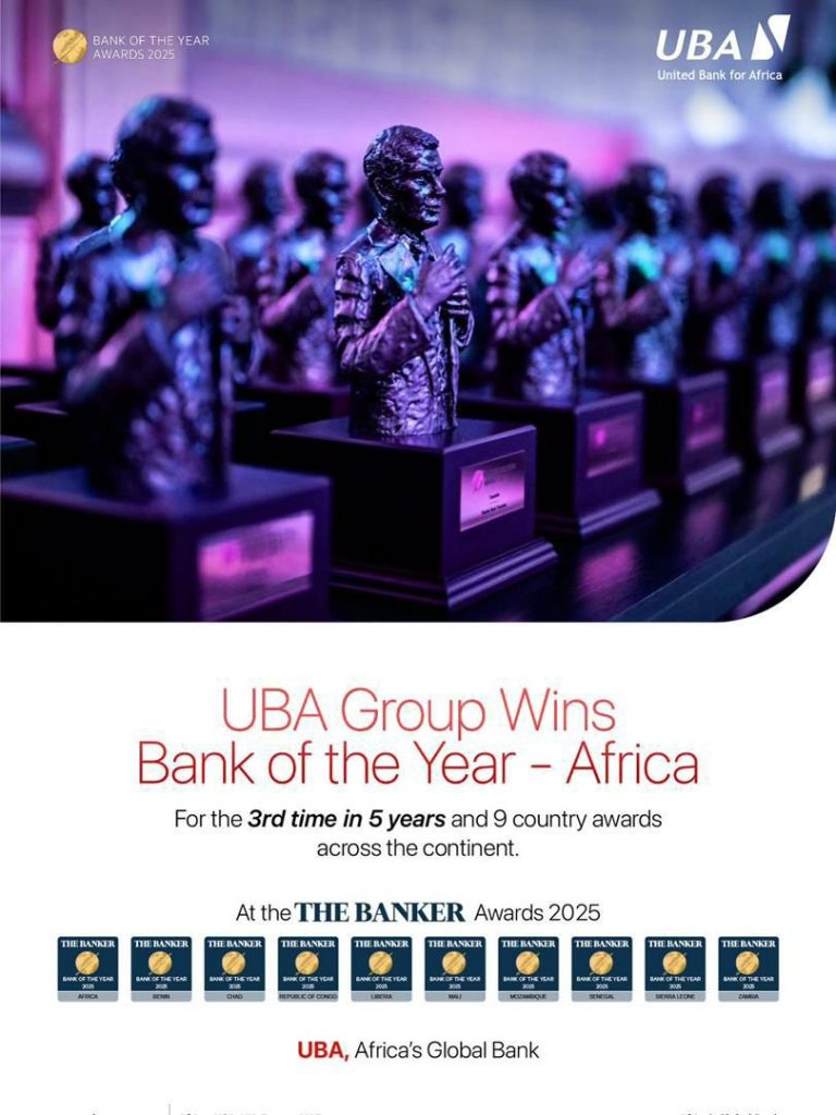 United Bank for Africa (UBA) Group has once again affirmed its position as a leading financial powerhouse on the continent, clinching the prestigious Africa’s Bank of the Year 2025 award at the renowned Banker Awards, organised by The Banker magazine of the Financial Times Group in London. This marks the third time in five years that UBA has secured the coveted continental honour.